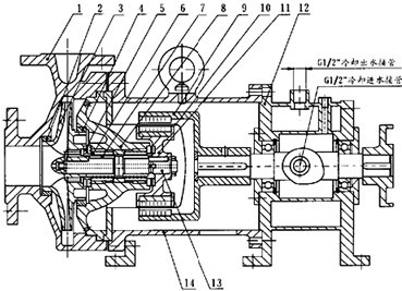 不銹鋼防爆高溫保溫磁力泵(風(fēng)冷/水冷/保溫夾套)結(jié)構(gòu)圖
