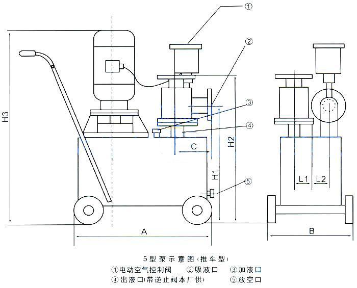 ①電動空氣控制閥 ②出液口(帶逆止閥,本單位供) ③吸液口 ④放空口 ⑤加液口 ⑥熱源進(jìn)出