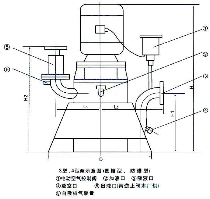 WFB系列長方型防爆型戶外型圓椎形無密封自控自吸泵結(jié)構(gòu)圖