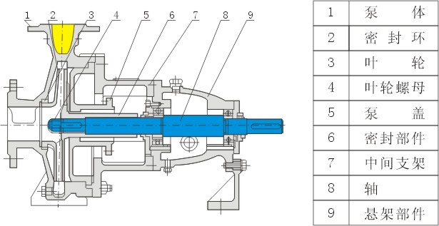 IH防爆不銹鋼化工離心泵結(jié)構(gòu)原理示意圖