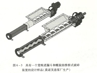 在輸送如此高黏度液體時的大挑戰(zhàn)是物體(看起來很難象流體)到達(dá)并進(jìn)入泵吸人口的能力。在這種情況下,用特殊的螺旋推進(jìn)器和寬喉道漏斗幫助流體進(jìn)入到泵中,以預(yù)防斷流。圖6 -3舉例說明了這種設(shè)計。