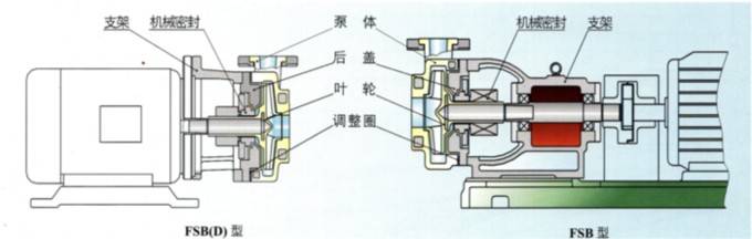 FSB型氟塑料合金離心泵采用目前為先進(jìn)的外裝式四氟波紋管機(jī)械密封,擁有多層保護(hù),延長了機(jī)封使用壽命,對(duì)于輸送含雜質(zhì)顆粒介質(zhì)時(shí),可配用無冷卻水單端面硬對(duì)硬(碳化硅對(duì)碳化硅)機(jī)械密封,所以用戶選型時(shí)需考慮到介質(zhì)中的固體含量。