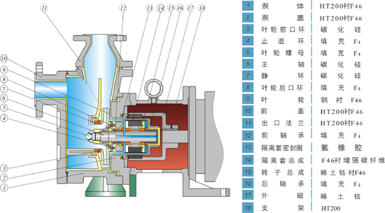 襯氟自吸式磁力泵,塑料自吸泵,磁力自吸泵,耐酸堿自吸泵,硫酸泵,鹽酸泵結(jié)構(gòu)圖