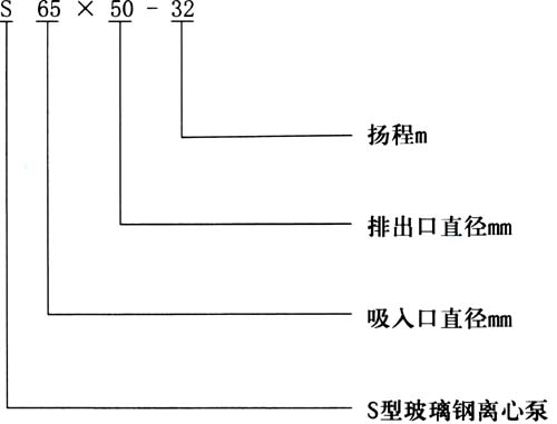 【S型玻璃鋼離心泵】型號意義: