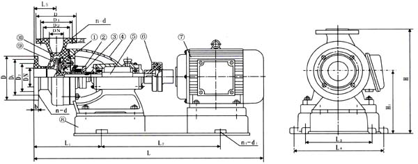 6、如果更換滾珠軸承或泵軸時,必須拆下機架,松開前端軸承蓋4只螺釘。拆下泵軸后端螺母和聯(lián)軸器,將泵軸向前端方向打出即可,再后拆下后端軸封蓋。