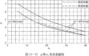 ∞根據(jù)圖13-12確定,對(duì)于開式葉輪,葉輪外徑D2(圖13-13)按下式計(jì)算