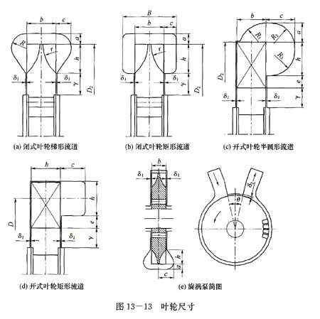 由于旋渦泵工作原理特殊,內(nèi)部流動(dòng)過(guò)程復(fù)雜,目前尚無(wú)精確的理論設(shè)計(jì)方法,故通常用模型換算法(與離心泵相同)和經(jīng)驗(yàn)系數(shù)設(shè)計(jì)法,下面介紹經(jīng)驗(yàn)系數(shù)設(shè)計(jì)法。