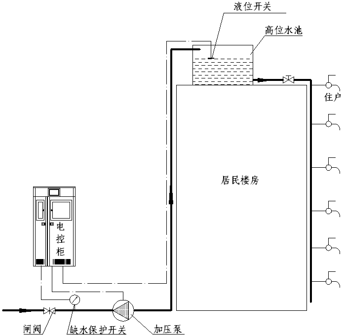 使用方式 ![]() 結(jié)合高位水池使用的浮球式自動(dòng)增壓泵