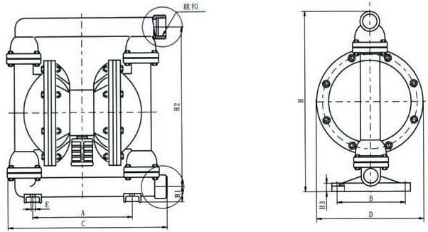 【QBY型工程塑料氣動隔膜泵】結(jié)構(gòu)圖: