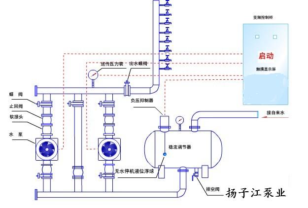 工作原理:無(wú)負(fù)壓變頻恒壓供水設(shè)備是一種新型的清潔衛(wèi)生、高效節(jié)能的供水設(shè)備,也被業(yè)界稱(chēng)為管網(wǎng)疊壓供水設(shè)備。該設(shè)備為全封閉式結(jié)構(gòu),不需要建造任何形式的水池,避免了供水二次污染。直接將食品衛(wèi)生等級(jí)的不銹鋼穩(wěn)流調(diào)節(jié)罐作為進(jìn)水儲(chǔ)水緩沖裝置直接與自來(lái)水管道相連,充分利用自來(lái)水管網(wǎng)原有壓力能源,在同樣供水需求的情況下,無(wú)負(fù)壓變頻供水可選擇功率較小的水泵及控制設(shè)備。同時(shí)在夜間小流量用水情況下利用市政供水水壓直接供水而無(wú)需啟動(dòng)水泵。相比傳統(tǒng)帶水池的供水設(shè)備,該設(shè)備節(jié)約了大量的電能和設(shè)備投資,其節(jié)能效果可高達(dá)50%以上。運(yùn)行過(guò)程中,穩(wěn)流調(diào)節(jié)罐配備的真空消除器可自動(dòng)消除設(shè)備運(yùn)行過(guò)程中對(duì)管網(wǎng)所產(chǎn)生的負(fù)壓,保證了正常供水的同時(shí)設(shè)備不會(huì)對(duì)市政管網(wǎng)其他用戶(hù)造成影響。無(wú)負(fù)壓變頻供水是目前高效節(jié)能的供水設(shè)備,特別適合城鎮(zhèn)自來(lái)供應(yīng)較為穩(wěn)定和充足的場(chǎng)合使用。