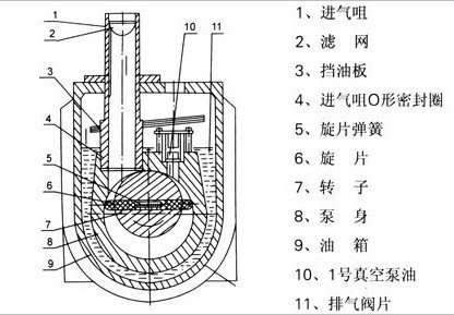 注意:1、裝配時2XZ型旋片式真空泵磨擦面涂上清潔真空泵油。2、記住零件原裝配位置,可減少跑合時間。3、緊固件應(yīng)無松動。