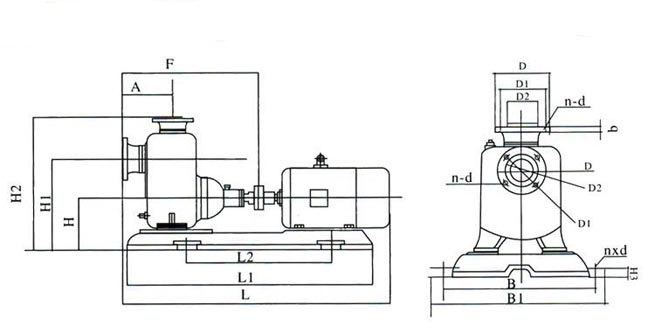 | L | L1 | L2 | A | F | B1 | B | H | H1 | H2 | H3 | n×d | D | D1 | D2 | b | n×d | D | D1 | D2 | b | n×d | |