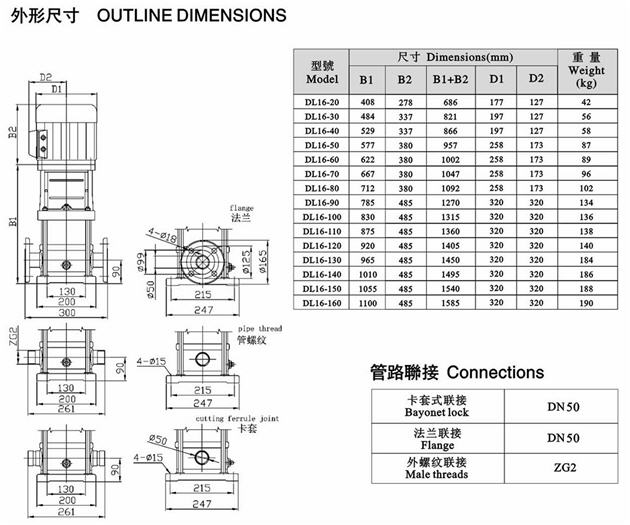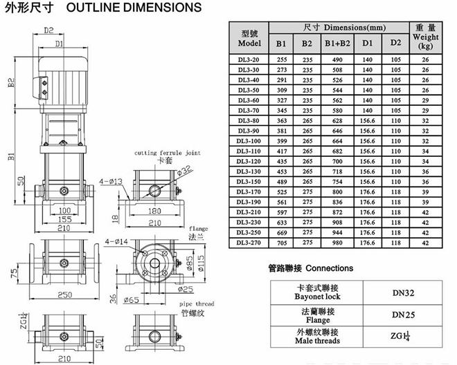 CDLF立式不銹鋼多級泵安裝尺寸圖