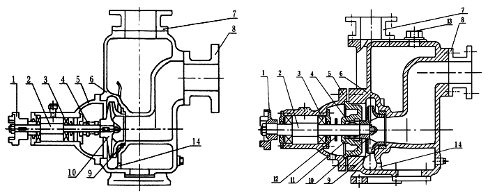 在一些泵的軸承體底部還設有冷卻室。當軸承發(fā)熱引起軸承體溫升超過70℃時,可在冷卻室處通過任意一只冷卻液管接頭,注人冷卻液循環(huán)冷卻。泵內部防止液體由高壓區(qū)向低壓區(qū)泄漏的密封機構是前后密封環(huán),前密封環(huán)裝在泵體上,后密封環(huán)裝在軸承體上,當泵經長期運轉密封環(huán)磨損到一定程度,并影響到泵的效率和自吸性能時,應給予更換。