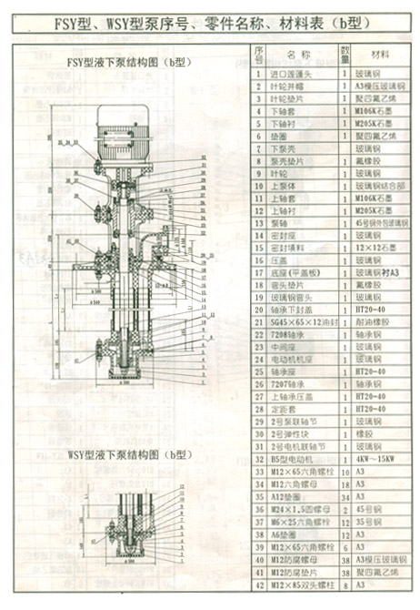 本單位生產(chǎn)的WSY型、FSY型玻璃鋼液下泵如下說明: