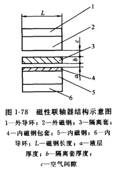磁性聯(lián)軸器由內(nèi)磁鋼(含導環(huán)和包套)、外進鋼(含導環(huán))及隔離套組成(見圖1-78),是磁力泵的核心部件。磁性聯(lián)軸器的結構、磁路設計,及其各零部件的材料關系到進力泵的可靠性,磁傳動效率及壽命。