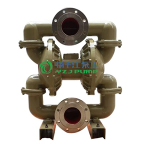 隔膜泵實(shí)際上就是栓塞泵,是借助薄膜將被輸液體與活柱和泵缸隔開,從而保護(hù)活柱和泵缸。隔膜左側(cè)與液體接觸的部分均由耐腐蝕材料制造或涂一層耐腐蝕物質(zhì);隔膜右側(cè)充滿水或油。氣動隔膜泵其常用的有五種材質(zhì):塑料、鋁合金、鑄鐵、