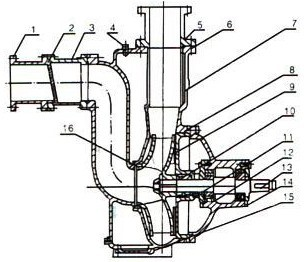 ZW型自吸式無堵塞排污泵,主要由泵體, 葉輪、后蓋、機械密封、泵軸、軸承座、進口閥、氣液分離管、加水閥門、進、排接管等組成。泵的結構見圖。ZW型自吸排污泵的工作原理:泵體內設有儲液腔,并通過上方的回流孔和下方的循環(huán)孔與泵工作腔相通,構成泵的軸向加流外混式系統(tǒng)。泵停止工作后,泵內腔已儲有一定容積的液體。當泵起動時,有關當局內的儲液在葉輪的作用下,夾帶著空氣被向上拋出,液體通過氣液分離管的網格回流到工作腔,氣體被排出泵外,使泵內形成一定的真空度,達到自吸的作用。